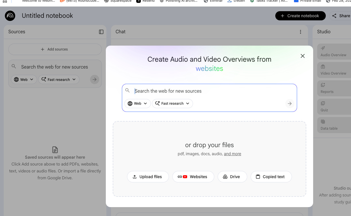 Upload your sources — PDFs, Google Docs, text files, or paste content directly