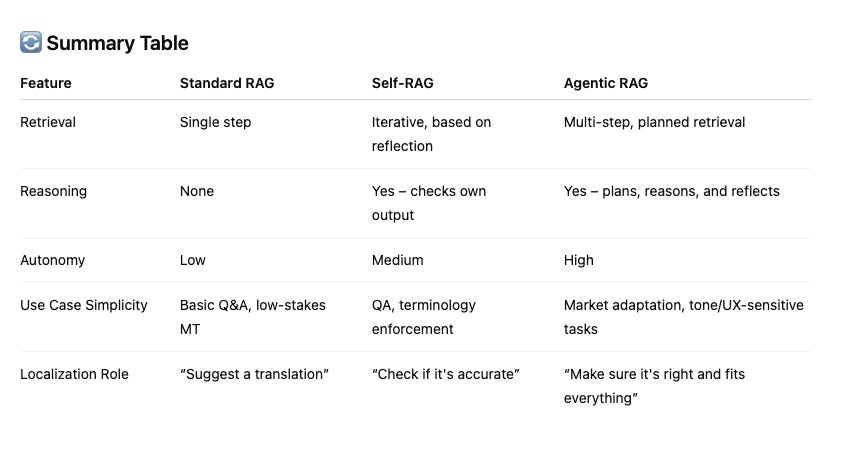 Welcome to the era of Self-RAG and Agentic RAG—two powerful evolutions of Retrieval-Augmented Generation (RAG) that could quietly revolutionize how localization teams work with content, context, and scale.