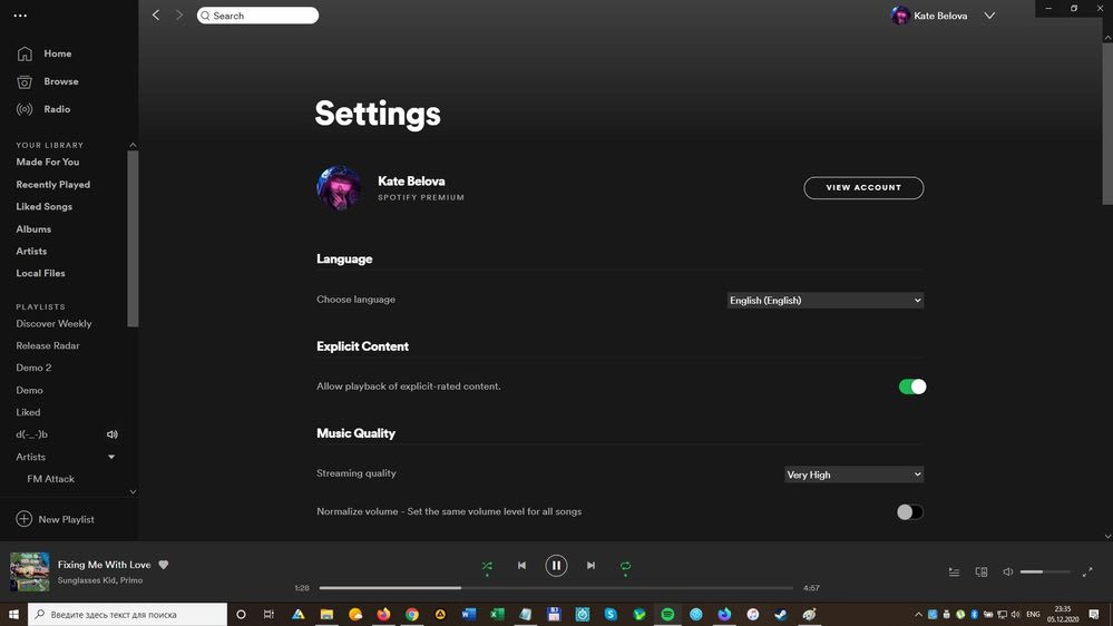 🎵 Spotify Desktop – Matches system locale but lets users choose via settings.